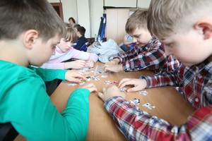Одним из самых сложных и интересных заданий для ребят было собрать из паззлов плакаты по электробезопасности.